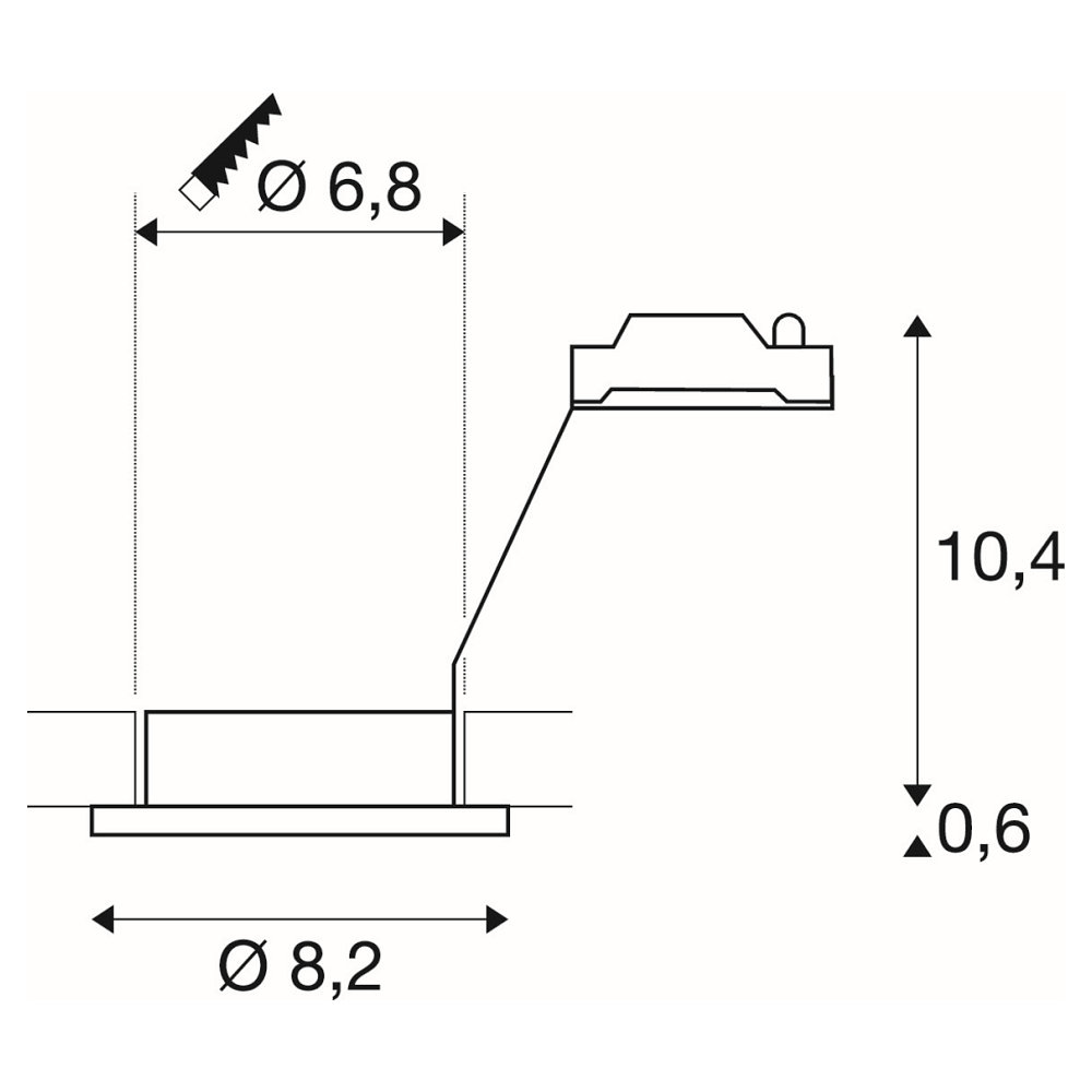 Installation is done by recessing into the ceiling, with a cutout diameter of 6.8 cm. The installation surface should have a material thickness of up to 20 mm to ensure safe and precise fitting of the downlight. Thanks to its round shape and compact dimensions, the luminaire can be easily integrated into various ceilings to create targeted lighting accents.