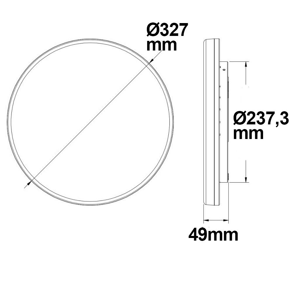 The dimensions of the light are Ø 32.7 cm and a height of 4.9 cm. The color rendering index is between 80-89Ra and the average lamp lifespan is 30000 hours. The LED light is not replaceable, but it offers high quality and efficiency for the desired application area.
