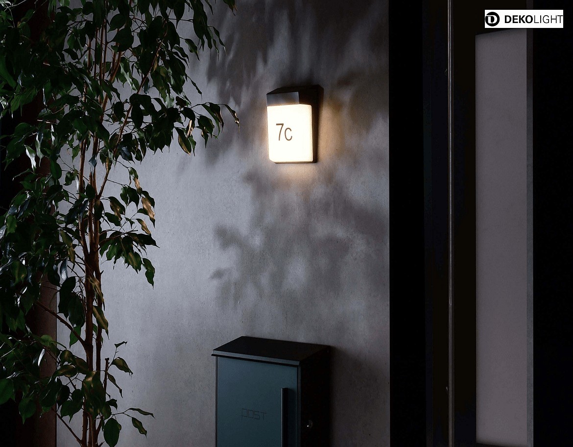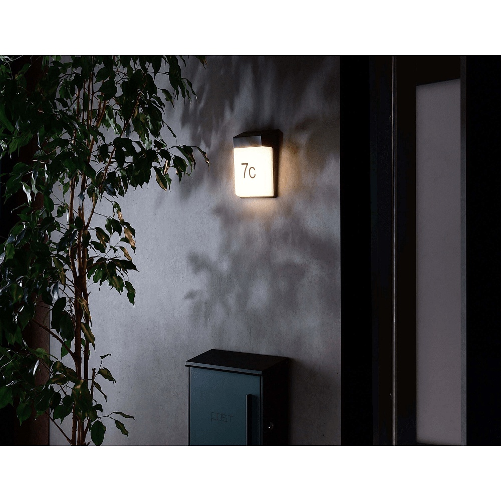 Outdoor LED wall luminaire GIANFAR, IP54, 12.5W 3000K 930lm 120°, incl. House number set, die-cast aluminum, dark grey