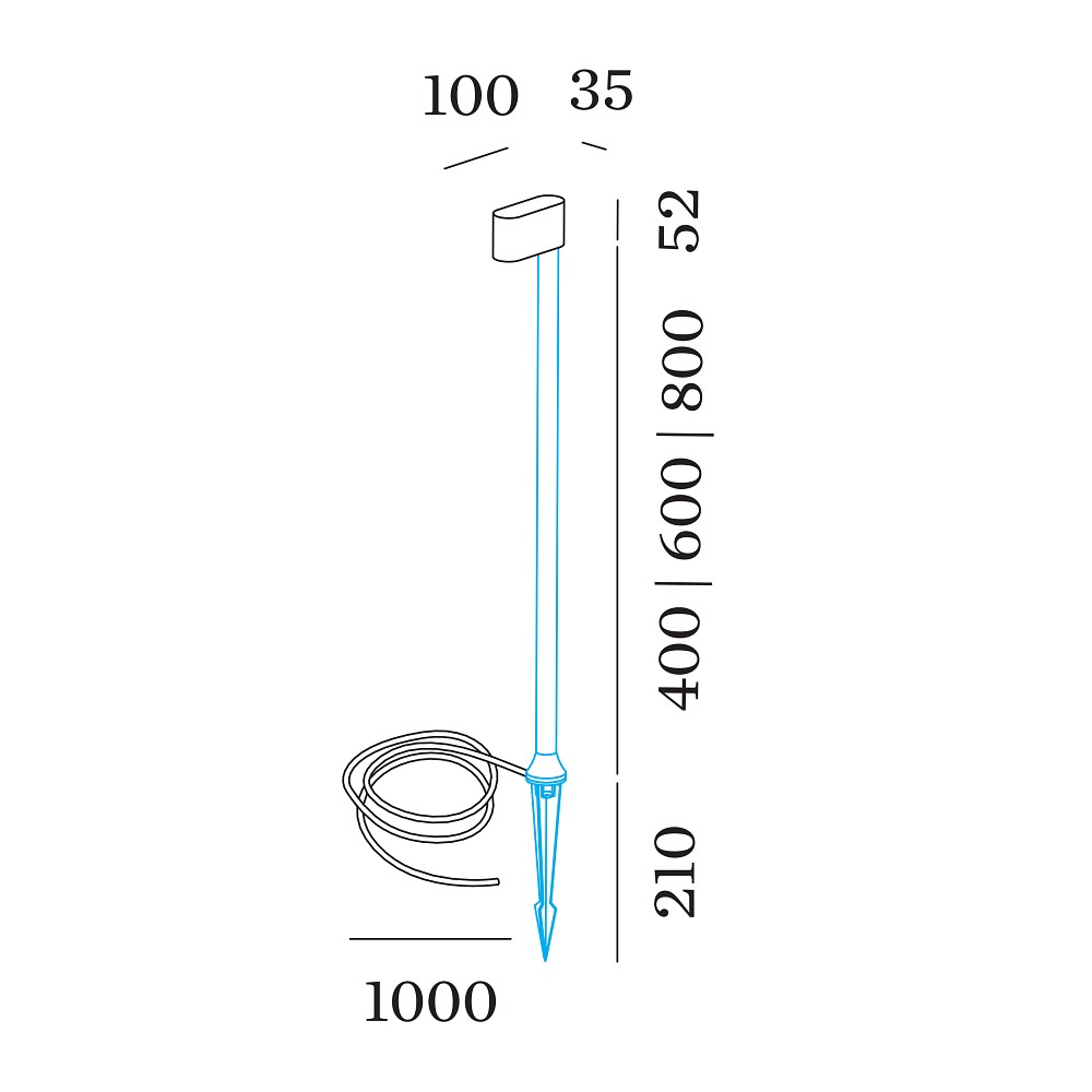 The LED outdoor light KIOSK 1.1 comes with a pre-installed connection cable that can be connected using the included waterproof cable connectors. Optionally, the use of an IP68 junction box is also possible. The height of the light can be individually adjusted with the optionally available tripod tubes. It operates directly on the 230V AC mains voltage.