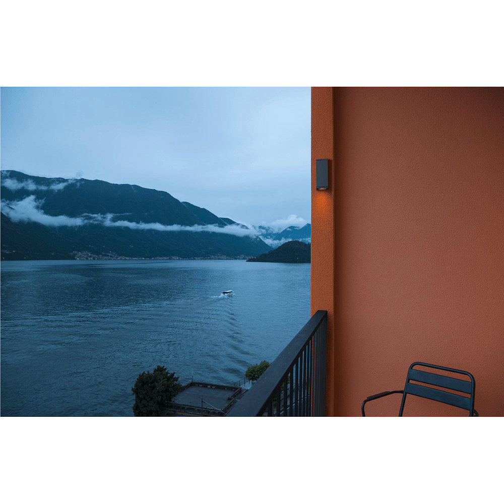 The outdoor wall light THEO WALL OUT is made of high-quality aluminum and glass and has protection class 1. The anthracite color tone gives the light a modern and timeless design that fits harmoniously into any environment.