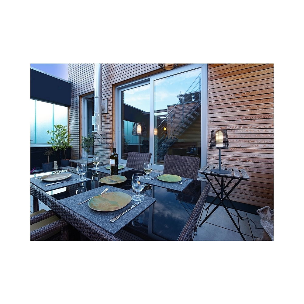 The outdoor light VELORUM is an elegant and decorative table lamp that enhances any outdoor area with its modern design. With a size of Ø/H: 22.4/51 cm and a weight of 3kg, it is compact and stable, making it ideal for outdoor use.