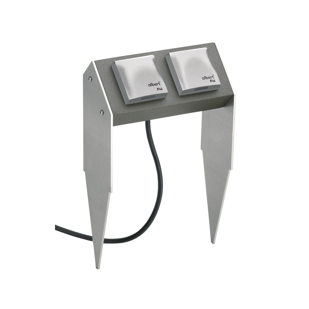 The Outdoor Socket Stake Bar Type No. 4402 from albert comes with 2 ground spikes and sockets with protective covers placed next to each other. The power supply is via a German type F socket and the power frequency is 50-60Hz. This socket stake is the ideal solution for those who need a practical and reliable power supply outdoors.