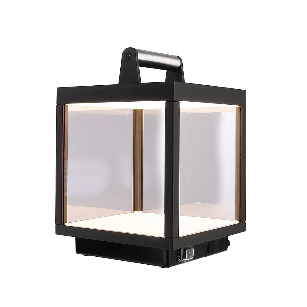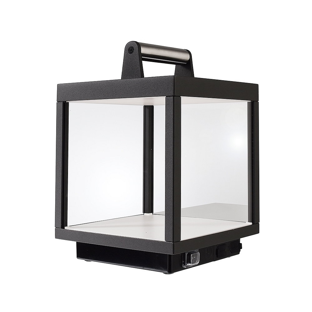 The Outdoor LED Battery Table Lamp LACERTAE USB is a practical and versatile lighting solution for indoor and outdoor use. With a beam angle of 120° and a power consumption of 5W, it provides a warm white light with a color temperature of 3000K and a luminous flux of 460lm. Thanks to the integrated touch dimmer function, the brightness can be adjusted in stages.