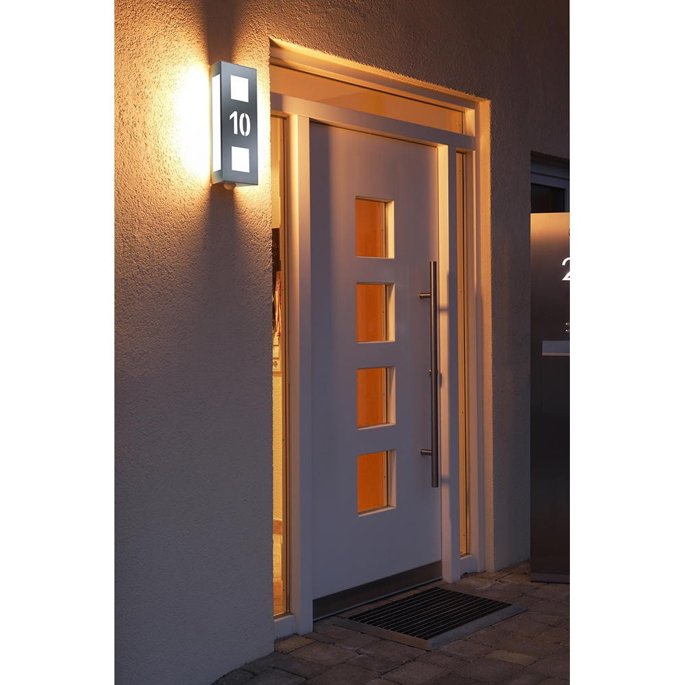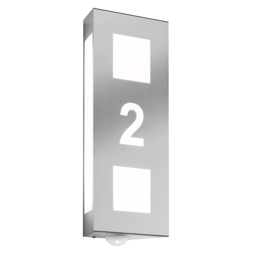 Outdoor wall luminaire AQUA TRILO with motion detector, with house number, (cut out), stainless steel, IP44, E27