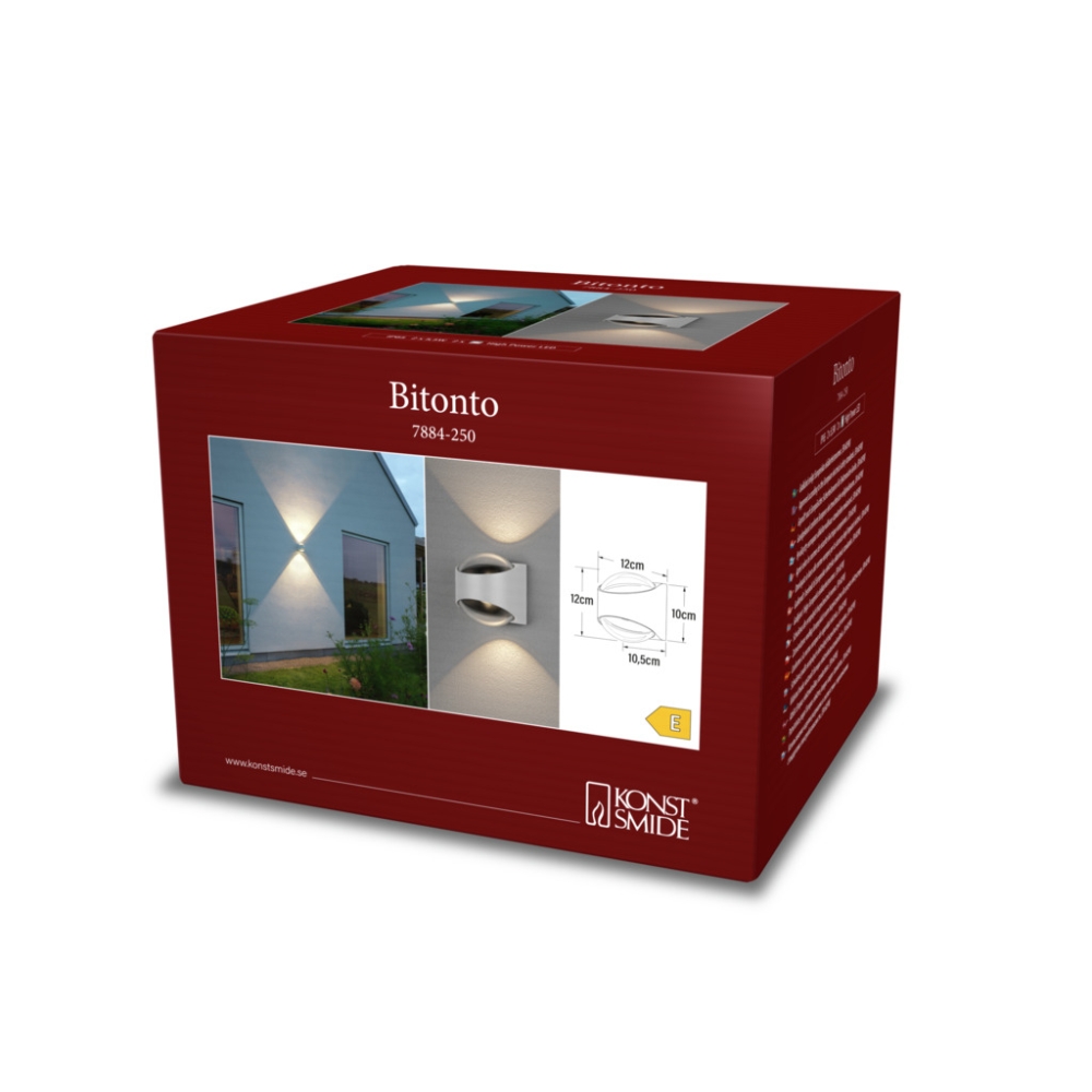 The LED wall light BITONTO UP/DOWN is a stylish and modern light that operates with a voltage of 230-240V. With dimensions of 10.5 x 12 x 12 cm, it fits perfectly on any wall and provides pleasant lighting.