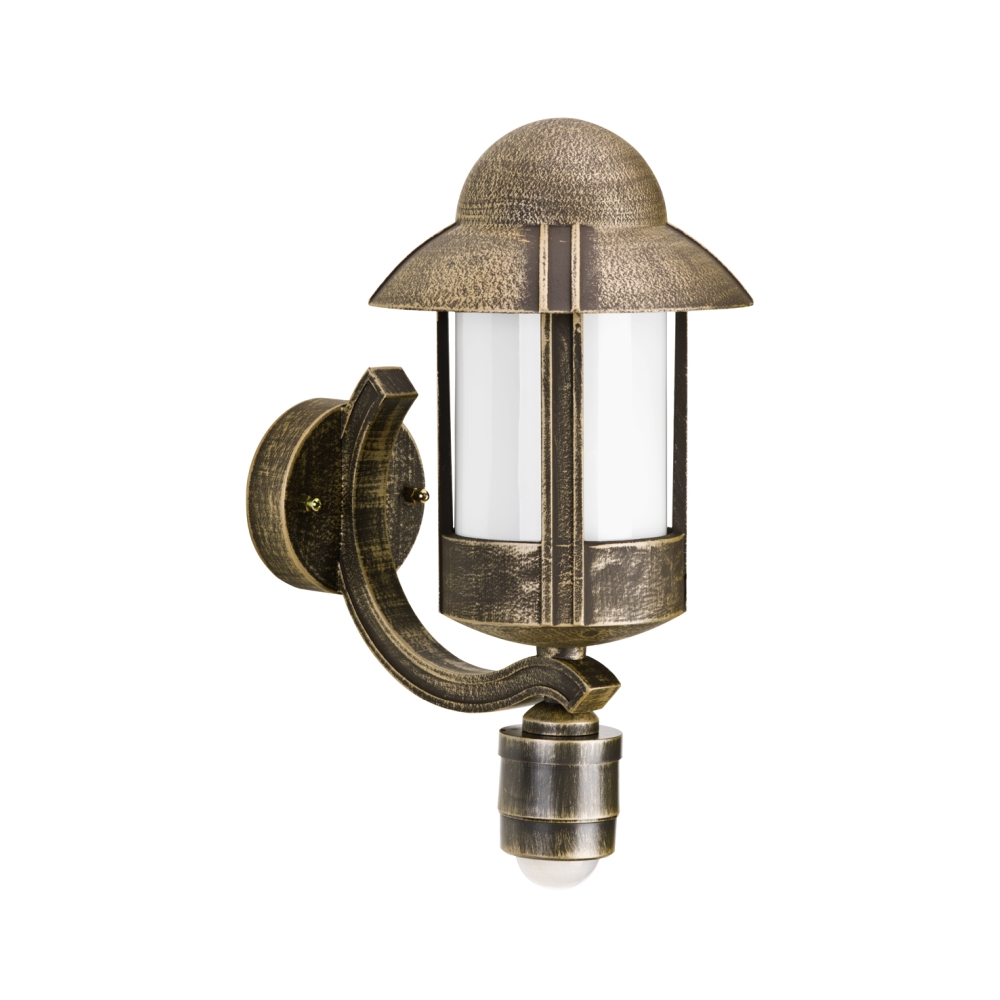 Outdoor Wall luminaire Country style Night watchman Type No. 1840 with motion sensor, IP44, E27, cast alu / opal, brown brass