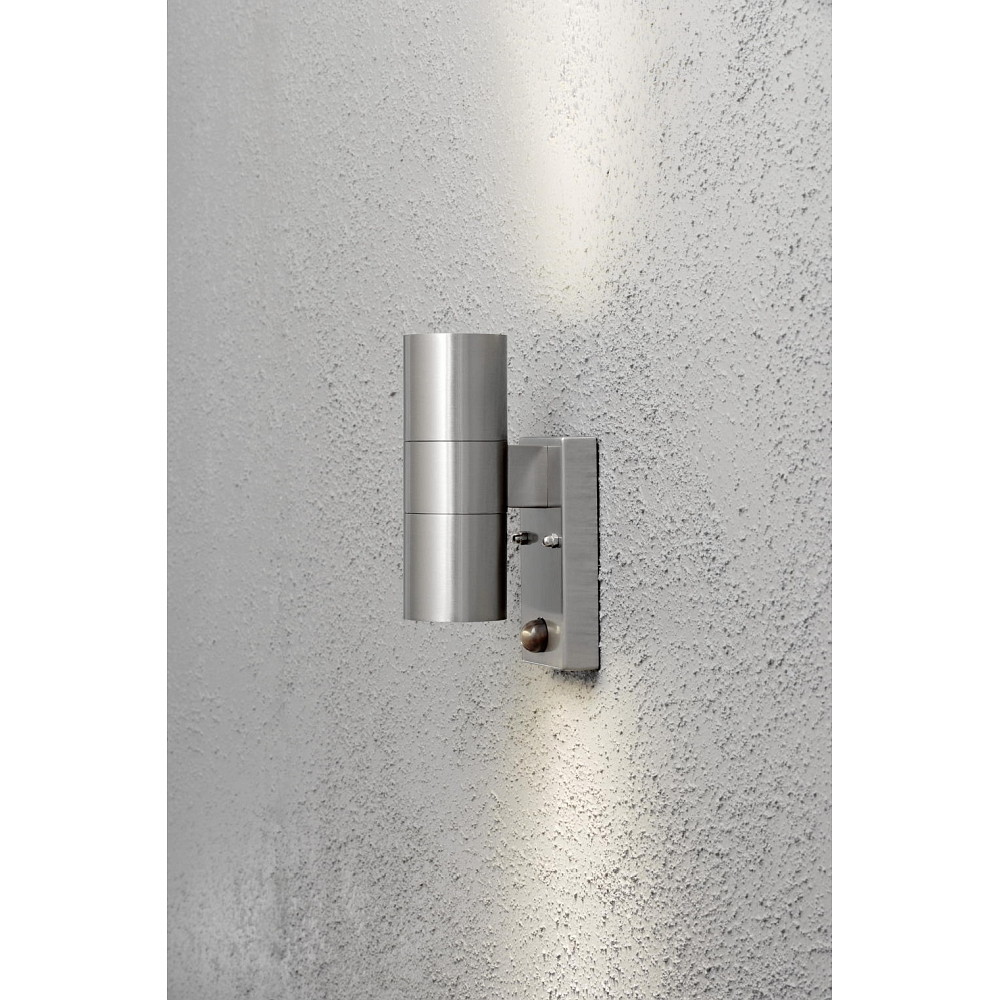 Outdoor wall luminaire MODENA UP/DOWN with motion detector, 2x GU10 max. 35W, stainless steel 304 / clear glass