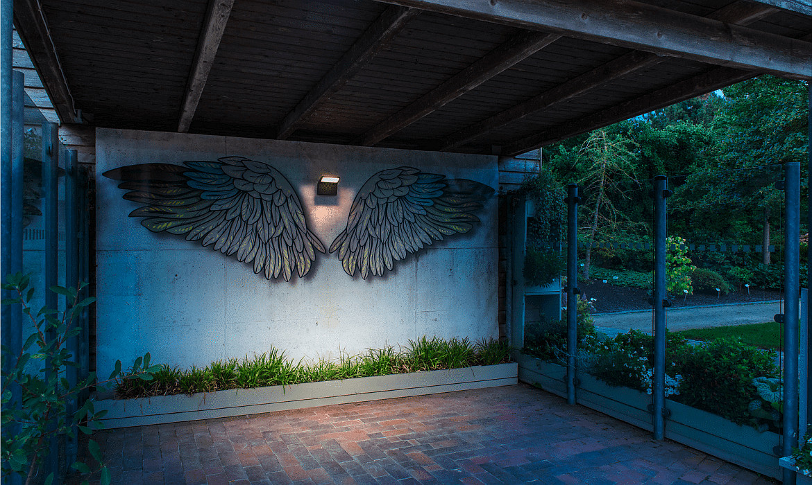 Thanks to its high protection class and weatherproof construction, the LED wall light ORDI II is ideal for outdoor use, such as for lighting terraces, driveways, or gardens. The continuously adjustable brightness allows for individual adaptation to specific needs and creates a pleasant atmosphere outdoors.
