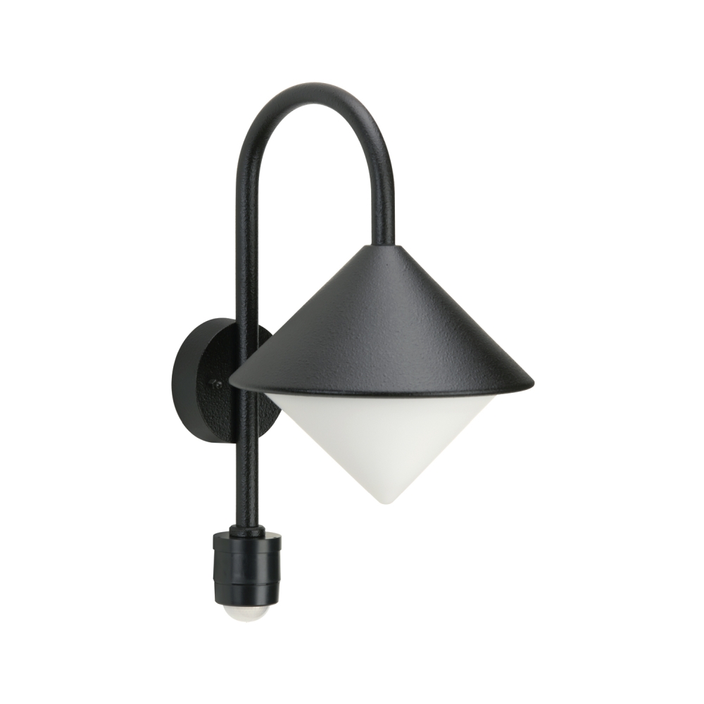 Outdoor Wall luminaire Type No. 0645 with motion sensor (Type No. 0646), IP44, E27 QA55 57W, cast alu opal glass, black matt