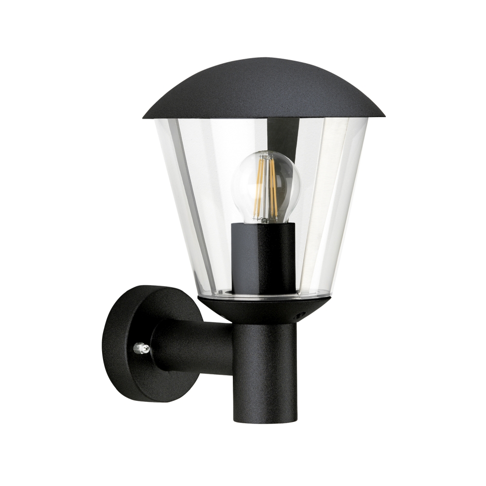 Outdoor Wall luminaire Type No. 1854, IP54 IK08, E27 QA55 max. 57W, aluminum / plastic clear, impact resistant, black matt