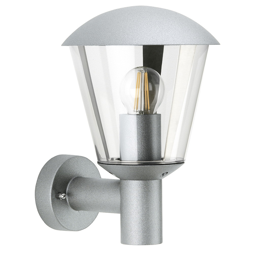 Outdoor Wall luminaire Type No. 1854, IP54 IK08, E27 QA55 max. 57W, aluminum / plastic clear, impact resistant, silver matt