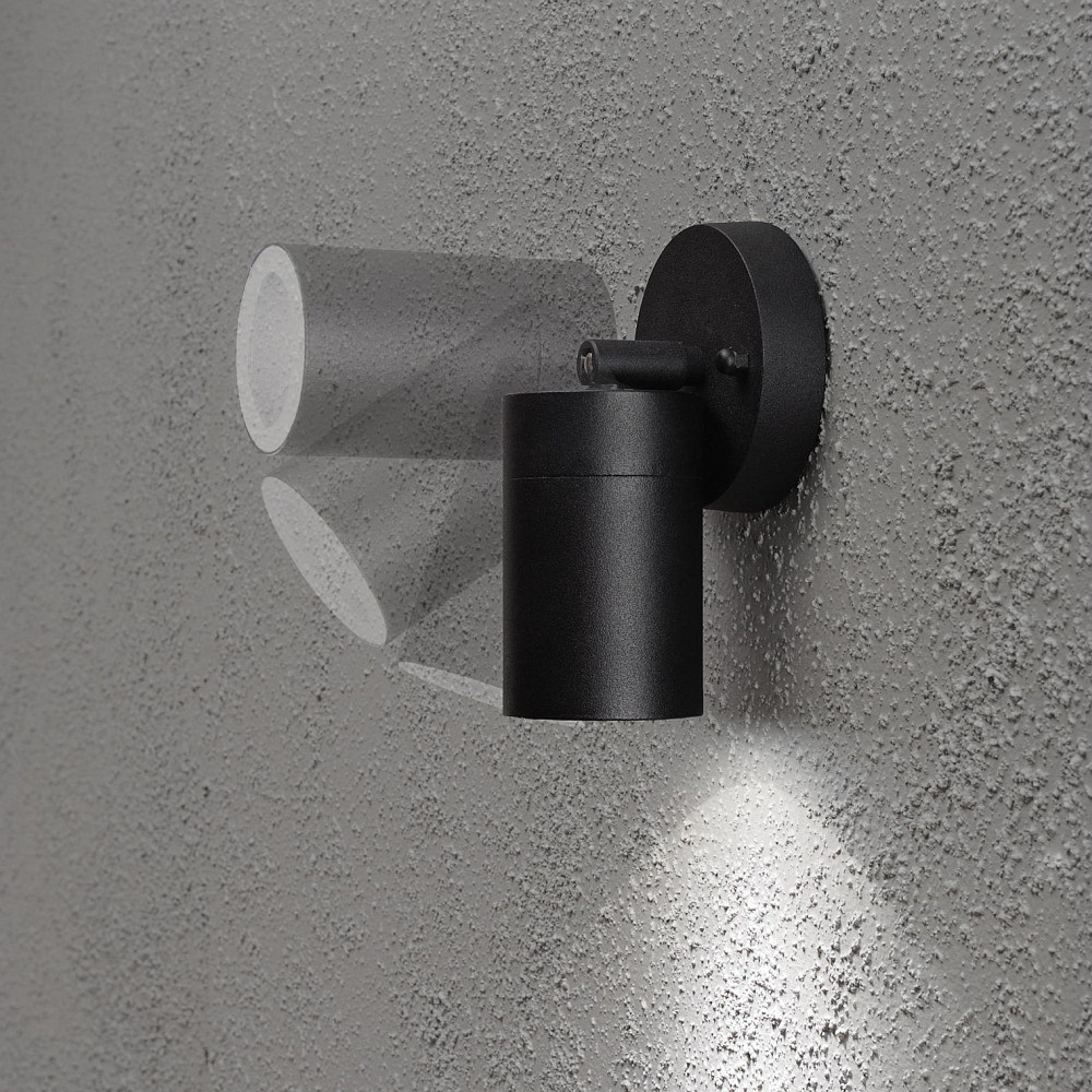 Outdoor wall spot MODENA, swiveling, GU10 max. 7W, cone of light 105°, black aluminium / clear glass