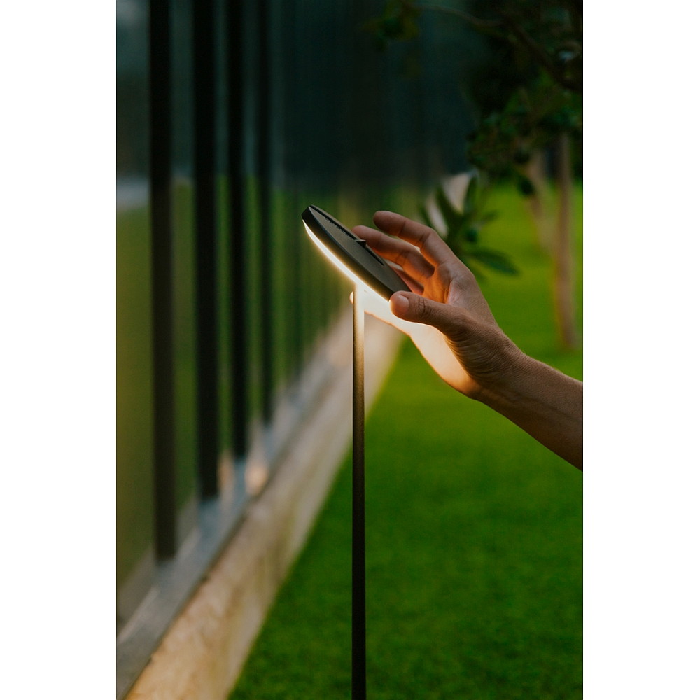The bollard light is made of aluminum, fiberglass, and polycarbonate, making it particularly sturdy and durable. Thanks to the IP54 protection, it is protected against moisture and foreign objects, and is also secured against vandalism and accidental impacts by the IK04 protection.