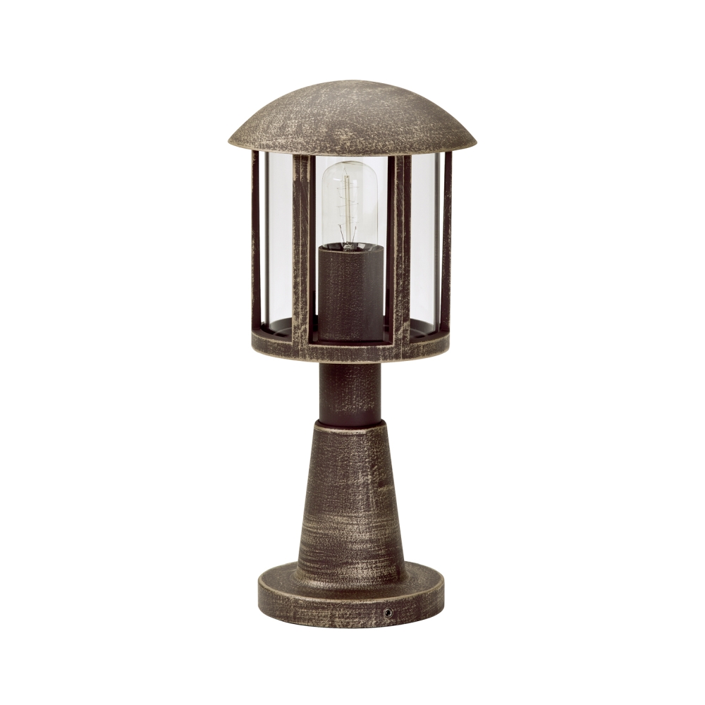 Pedestal luminaire Country style Vintage Type No. 0542, IP44, 60cm, E27 QA55 max. 57W, cast alu, glass clear, brown brass