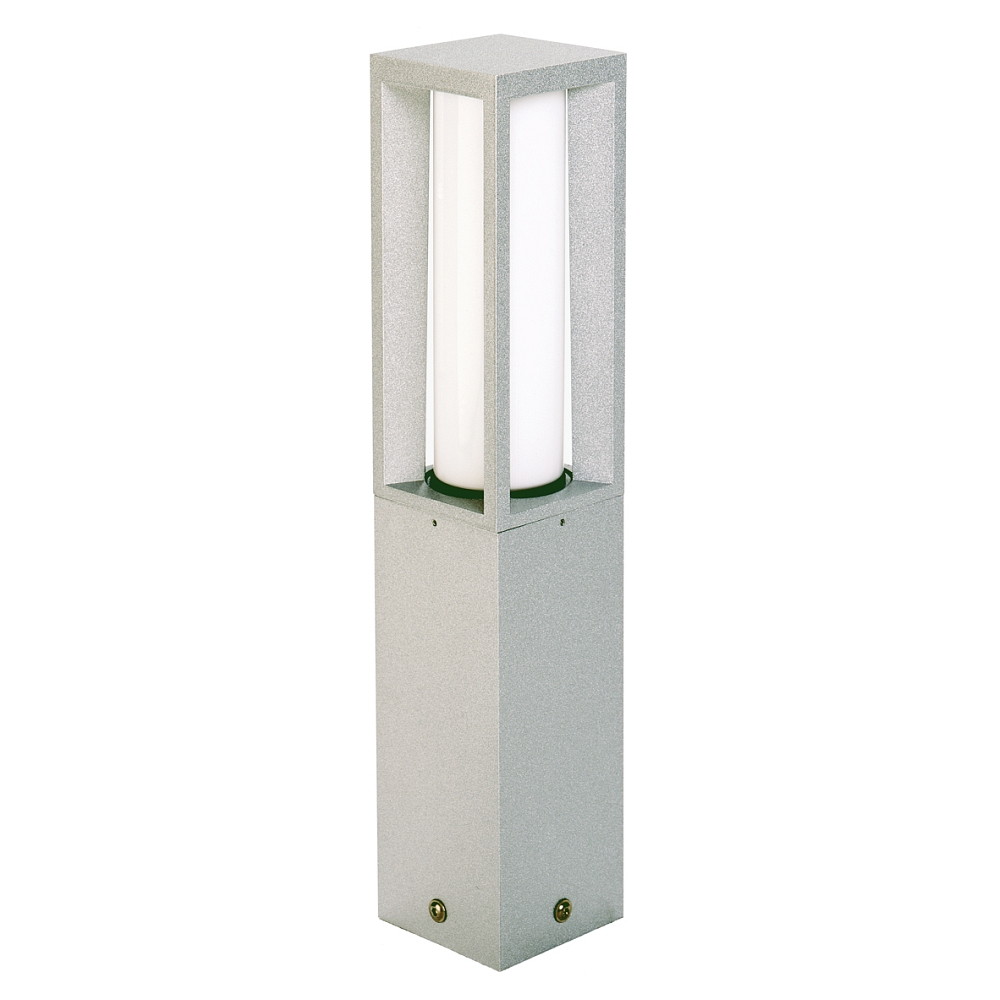Pedestal luminaire Type No. 0508, IP44, height 50cm, E27 max. 20W (LED), cast alu / opal glass, silver