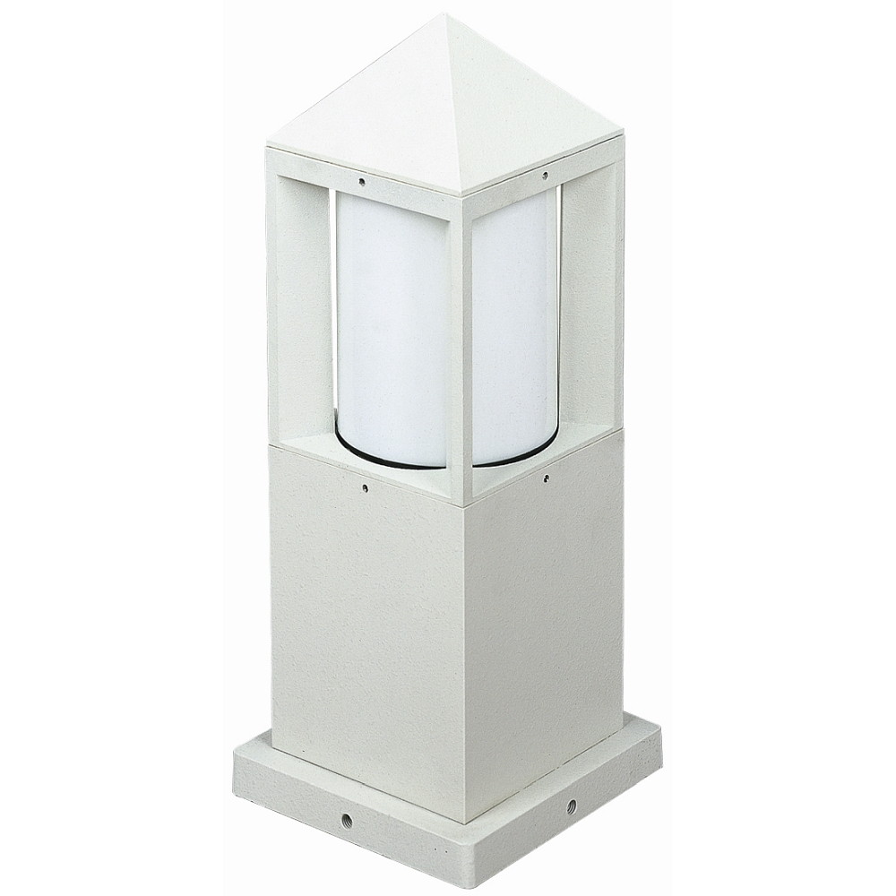 Pedestal luminaire Type No. 0556, IP44, height 38cm, E27 QA55 max. 57W, cast alu / opal glass cylinder, white