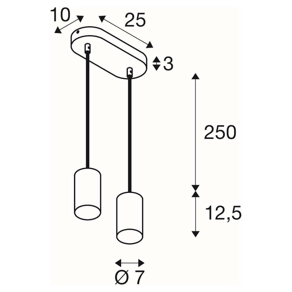 pendant luminaire ASTO TUBE 2 flames, rigid, long GU10 IP20, black dimmable