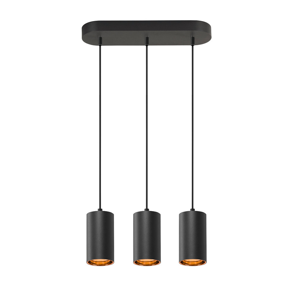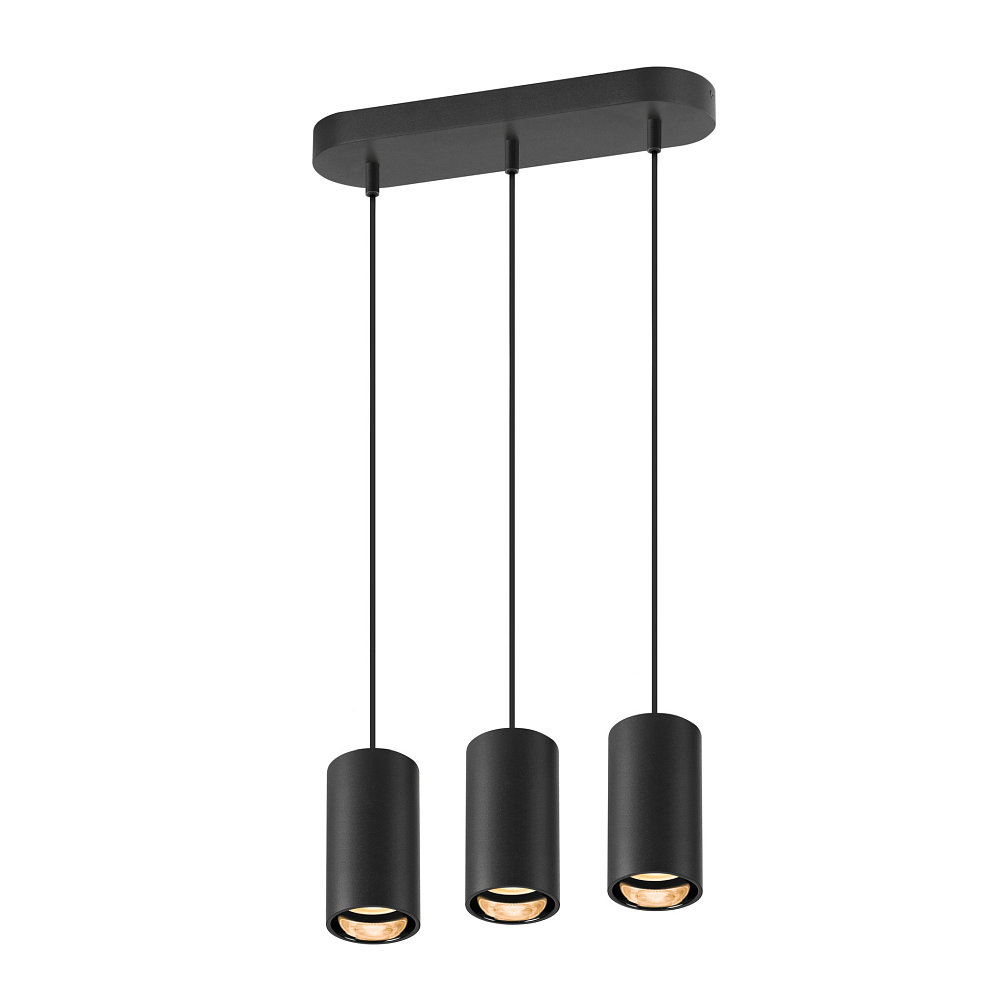pendant luminaire ASTO TUBE 3 flames, rigid, long GU10 IP20, black dimmable