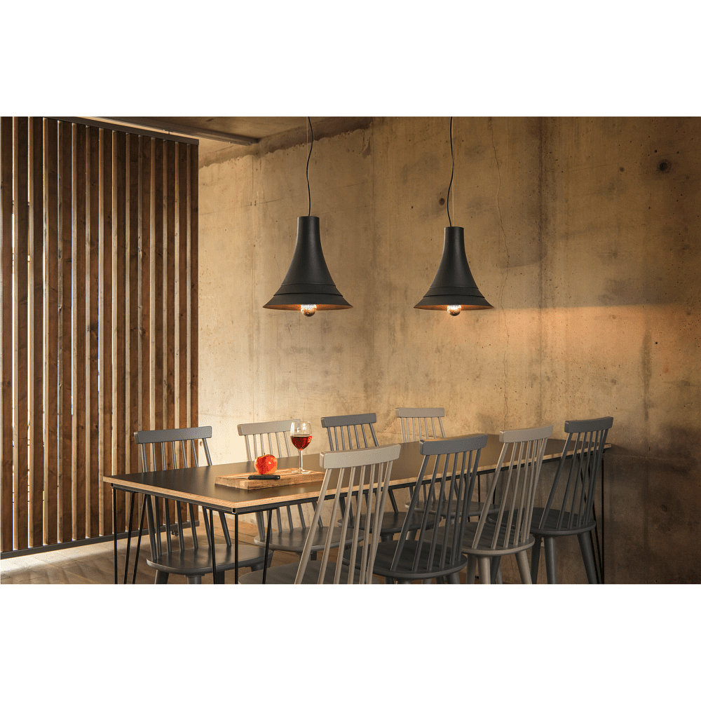 The pendant light BATO 35 PD comes with an E27 socket and can be operated with a voltage of 220-240V~. It is dimmable, both with appropriate accessories and with dimmable light sources. The IP20 protection class makes it ideal for indoor use.