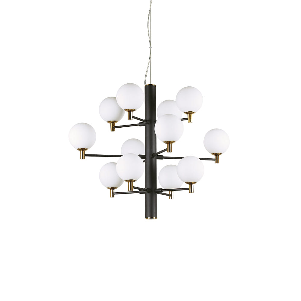 Pendant luminaire COPERNICO, 12 flames, Ø 71cm, incl. 12x G9 LED 3.2W 3000K, matt black / brass
