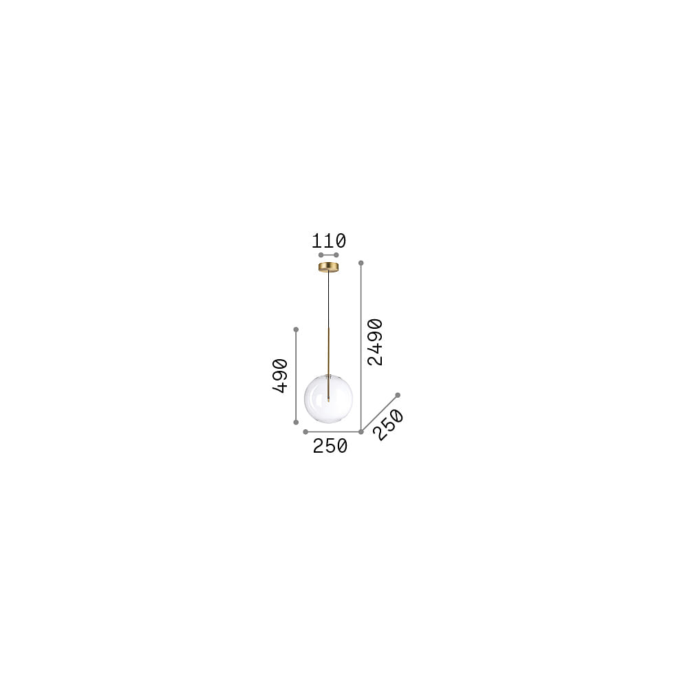 The pendant light EQUINOXE SP1 is an elegant lighting element for your indoor space. With a size of Ø 25 cm and a variable height from 29.5 cm to 249 cm, it fits perfectly in any room. The canopy has a diameter of 11 cm and the light weighs only 0.85 kg, allowing for easy installation.
