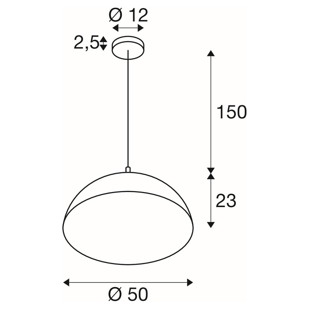 pendant luminaire FORCHINI 50 down, half round E27 IP20, black matt dimmable