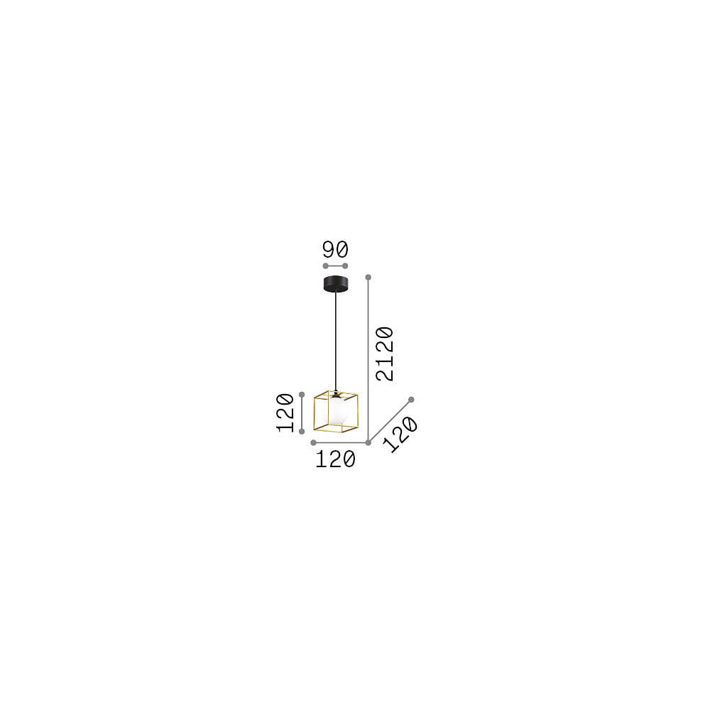 The overall size of the light is 12 x 12 x 212 cm, the light body measures 12 x 12 x 12 cm. The glass has a diameter of 10 cm and the canopy has a diameter of 9 cm. The light source has a diameter of 1.9 cm and a length of 4.9 cm. The pendant light has a weight of 0.66 kg.
