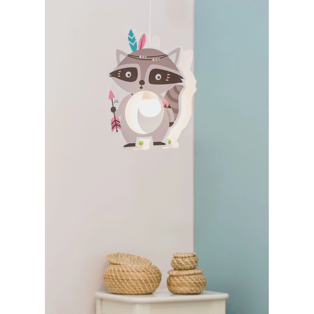 Pendant luminaire LITTLE INDIANS "WASCHBÄR OSKAR", E27, grey