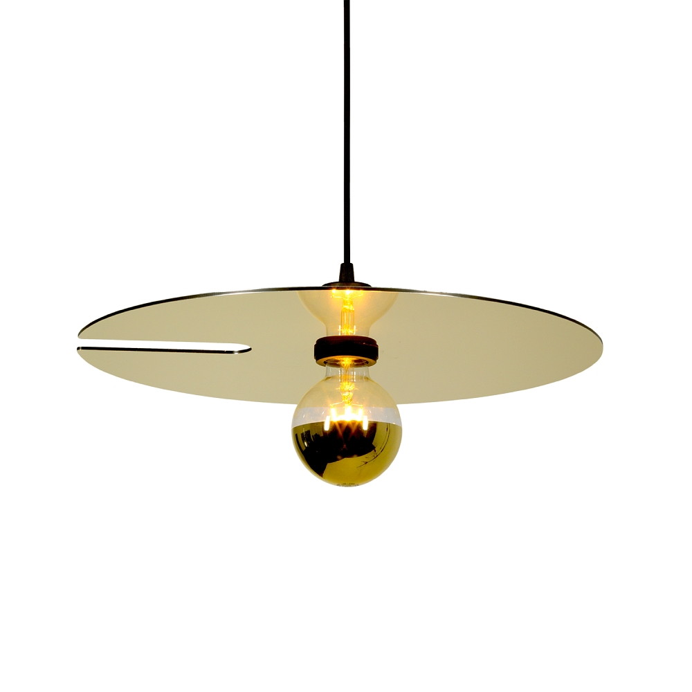 Pendant luminaire MIRRO 2.0, length 250cm / mirror Ø 45cm, E27 (excl.), black gold