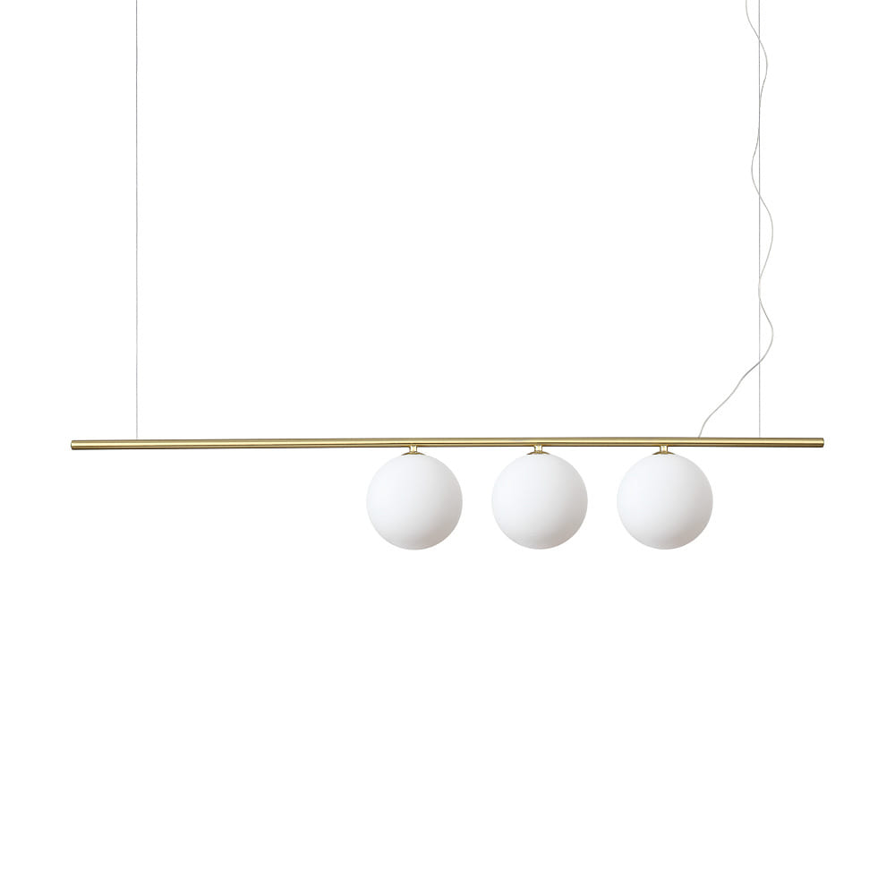 The pendant light PERLINE SP3 is made of high-quality glass and metal, which ensures not only durability but also an appealing design. The brass color gives the light a noble and modern look that fits various interior styles.