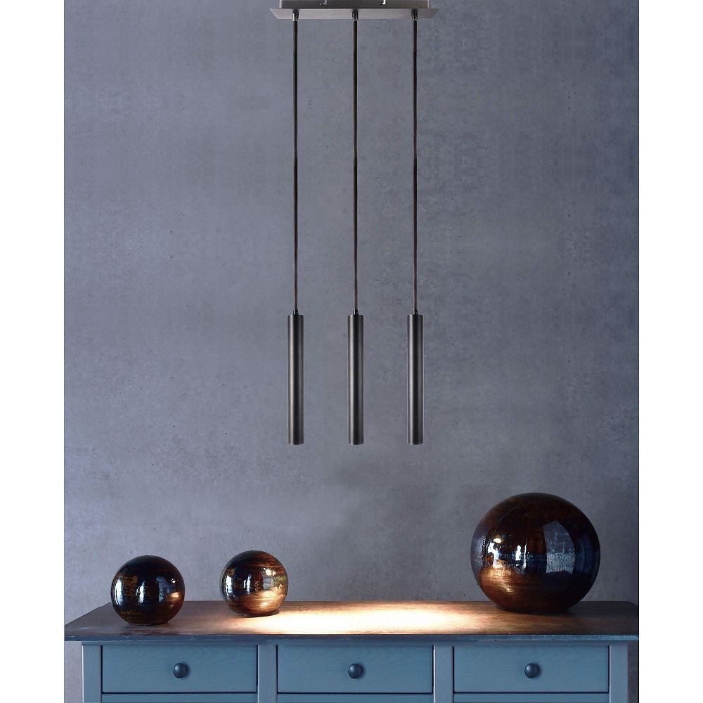 pendant luminaire SLIM DIM 3 flames, long, UGR < 19 IP20, deep black dimmable