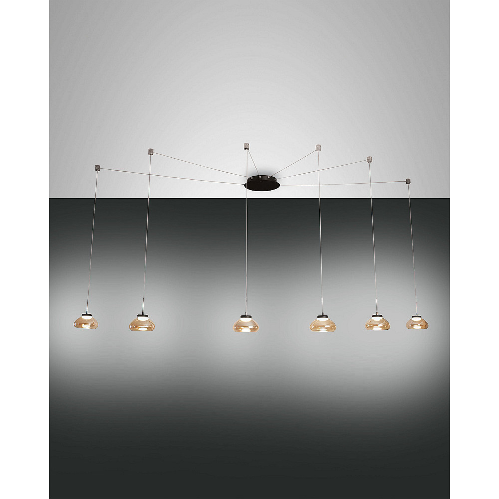 Pendelarmatuur ARABELLA 6-vlams, bedienbaar met stem, incl. Smartluce IP20, amber, zwart dimbaar