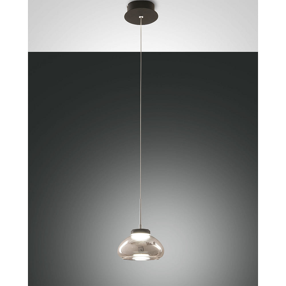 Pendelarmatuur ARABELLA kort, bedienbaar met stem, incl. Smartluce IP20, rookkleuren, zwart dimbaar