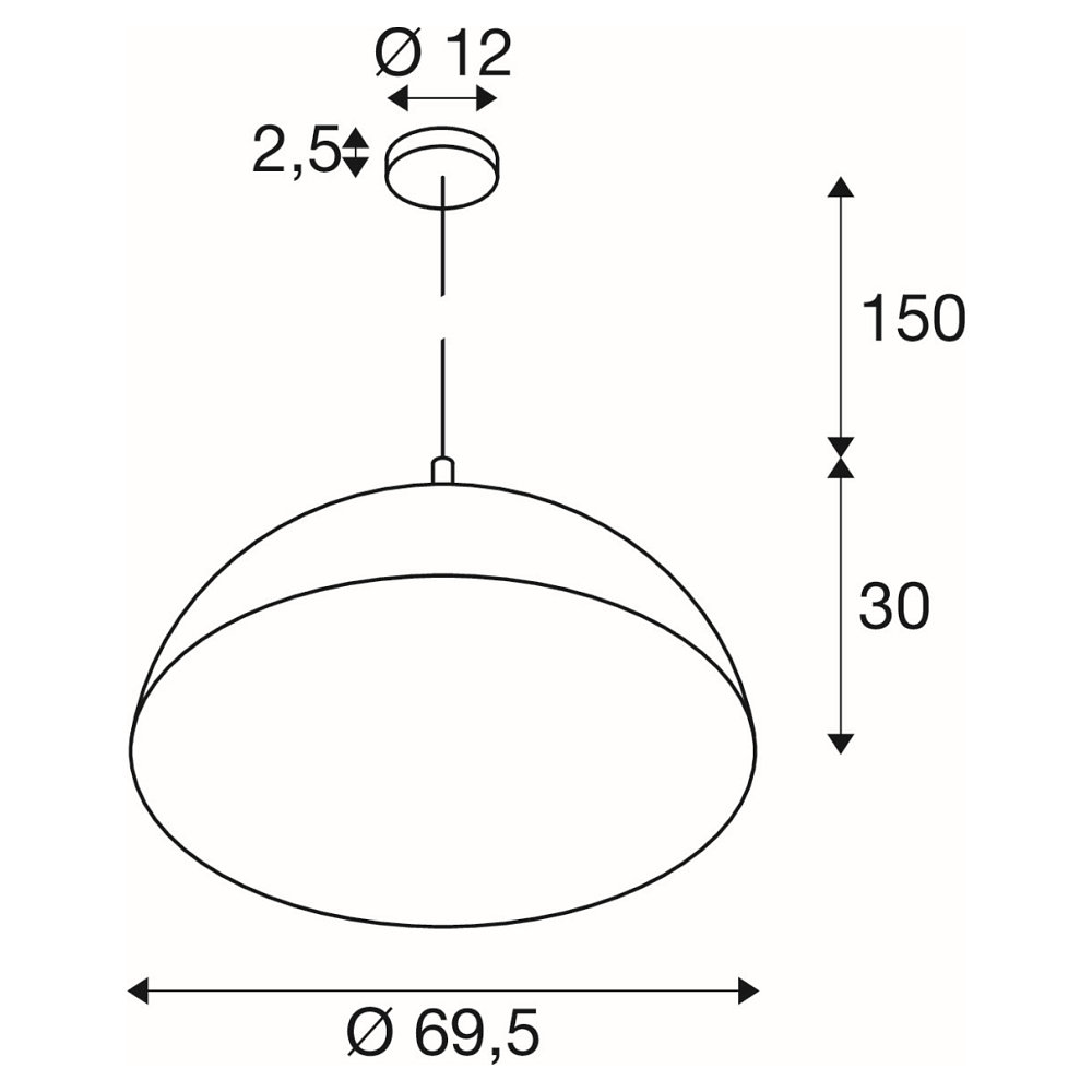 Pendelarmatuur FORCHINI 70 down, halfrond E27 IP20, zwart mat dimbaar