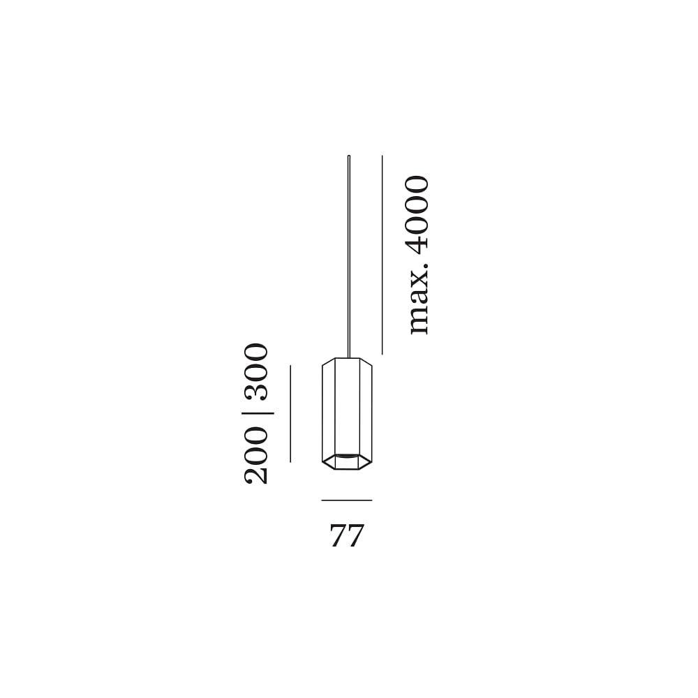 De hanglamp heeft een stralingshoek van 36° en een IP20-bescherming. De lampenkap heeft een diameter van 6,7 cm en een hoogte van 30 cm, terwijl de totale afmetingen van de lamp een diameter van 7,7 cm en een hoogte van 430 cm hebben. De installatie gebeurt door middel van plafondmontage, met een verstelbare ophanglengte tot 400 cm.