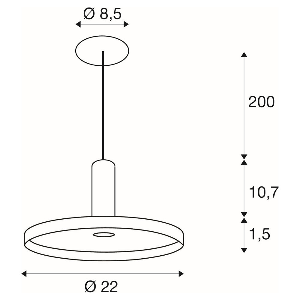 De LED hanglamp LALU® SET PLATE 22 van SLV valt op door zijn moderne ontwerp en hoogwaardige afwerking. Met een diameter van 22 cm en een hoogte van 11,5 cm is het een elegant verlichtingsobject dat vooral opvalt door zijn zwarte kleur. De lengte van de ophangkabel is 200 cm en kan individueel worden ingekort, waardoor de verlichting perfect kan worden aangepast aan de hoogte van elke ruimte.