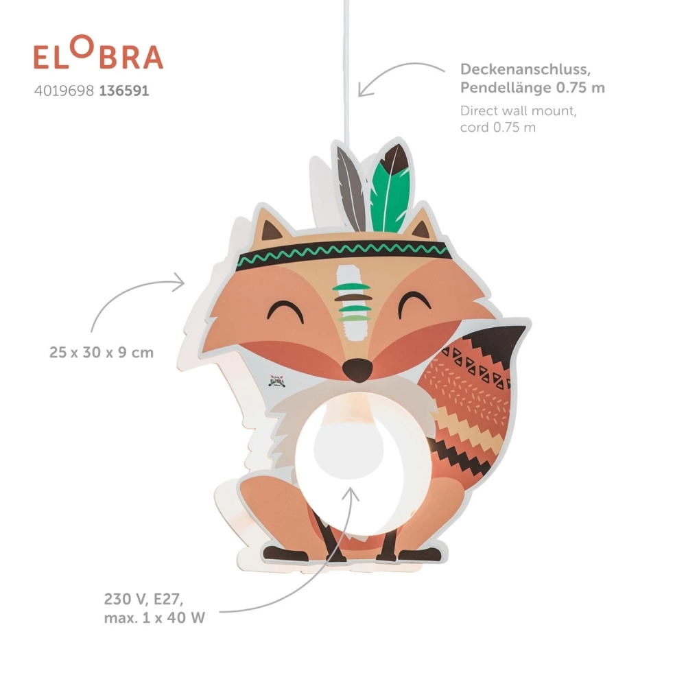 Pendelarmatuur LITTLE INDIANS „FUCHS FILIP“ E27, oranje