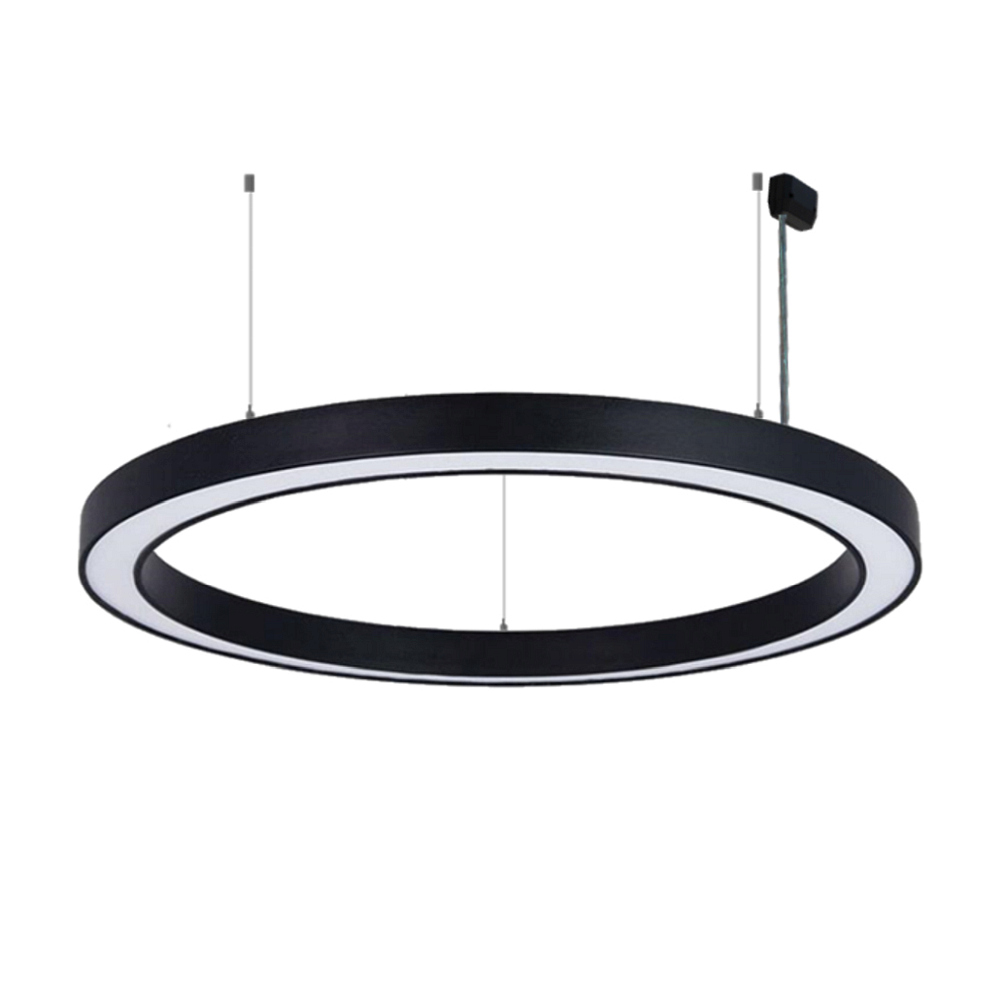 De hangende LED-lichtkring van FRISCH-Licht® valt op door zijn elegante ontwerp en veelzijdige gebruiksmogelijkheden. Met een diameter van 133,5 cm en een slanke bouwhoogte van slechts 7,3 cm, past deze lamp harmonieus in elke interieurstijl. De zwarte aluminium ophanging gecombineerd met een opaline PMMA-diffuser zorgt voor een hoogwaardige uitstraling en een gelijkmatige, verblindingsvrije lichtverdeling. Perfect voor veeleisende werkplekken waar optimale verlichting essentieel is.