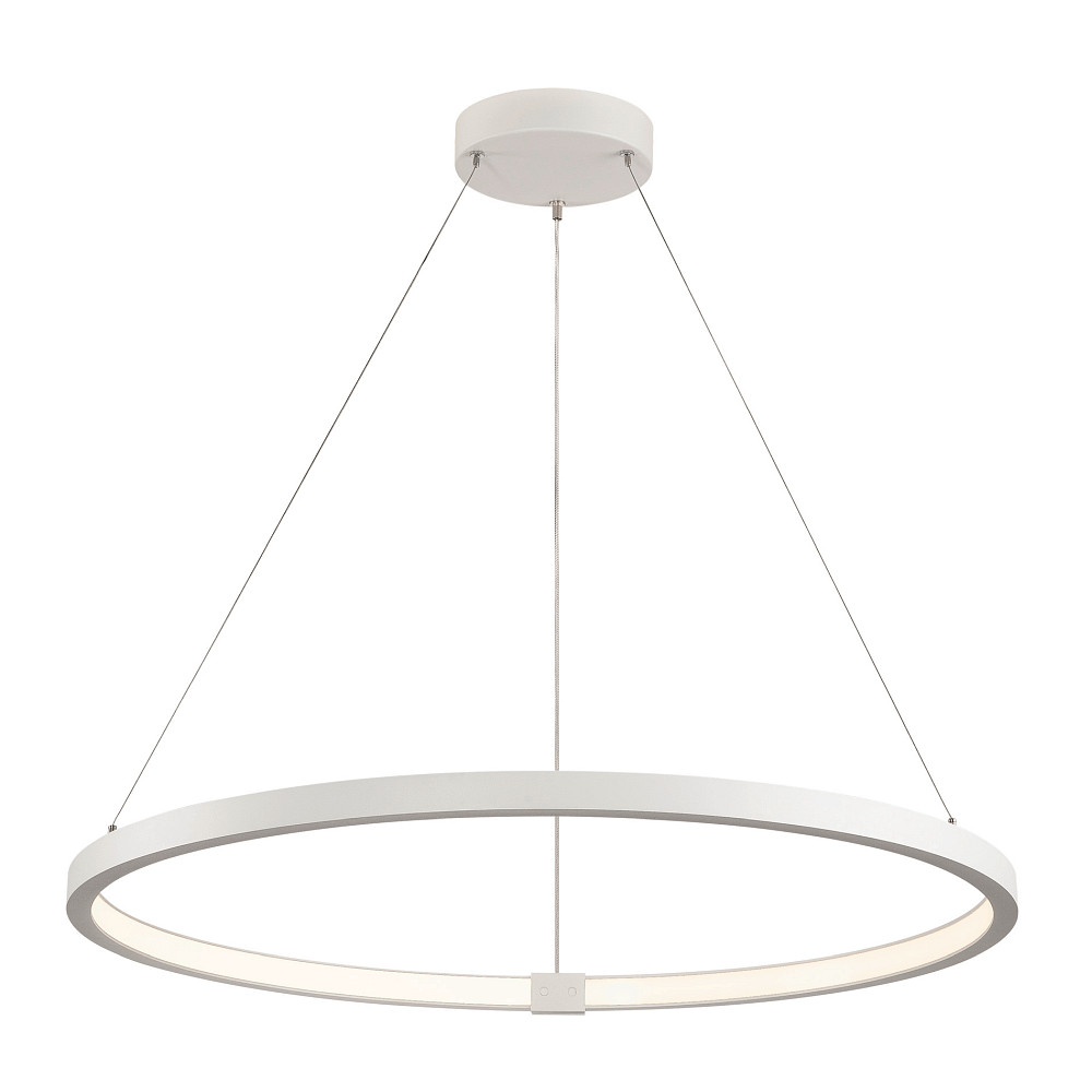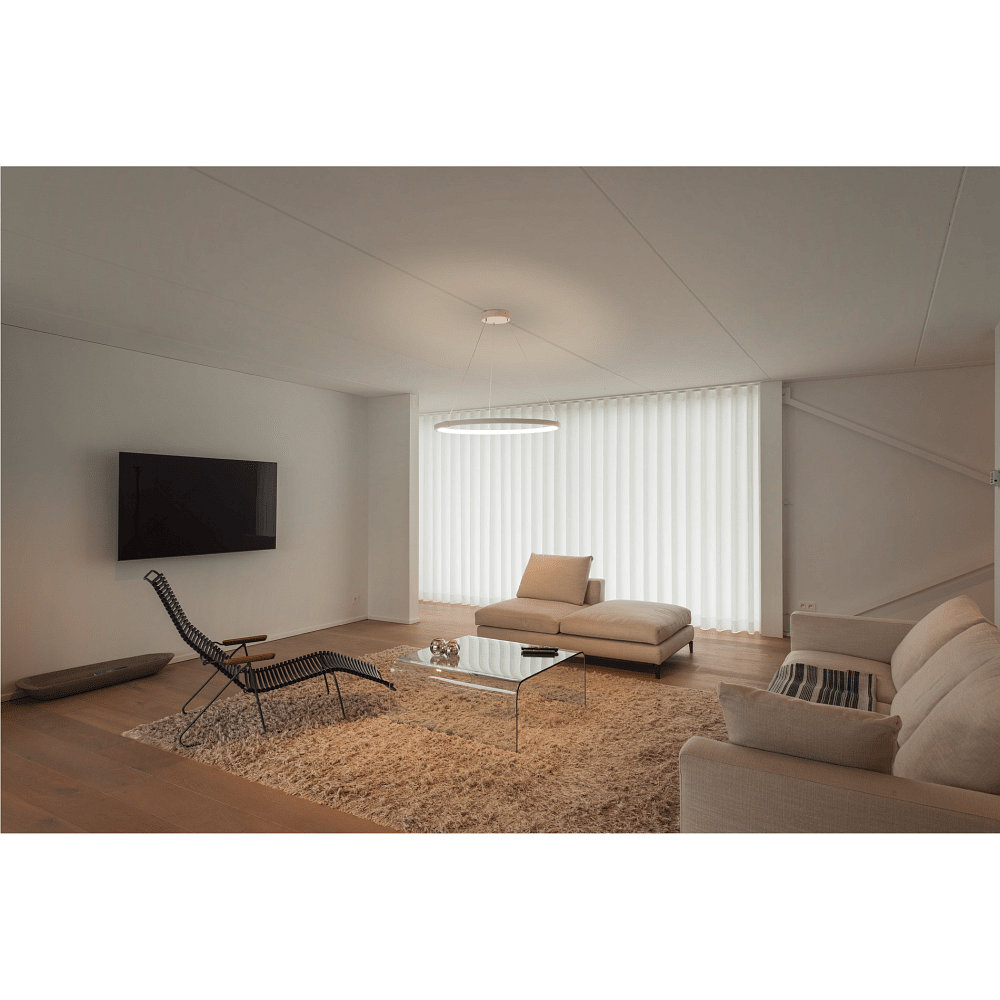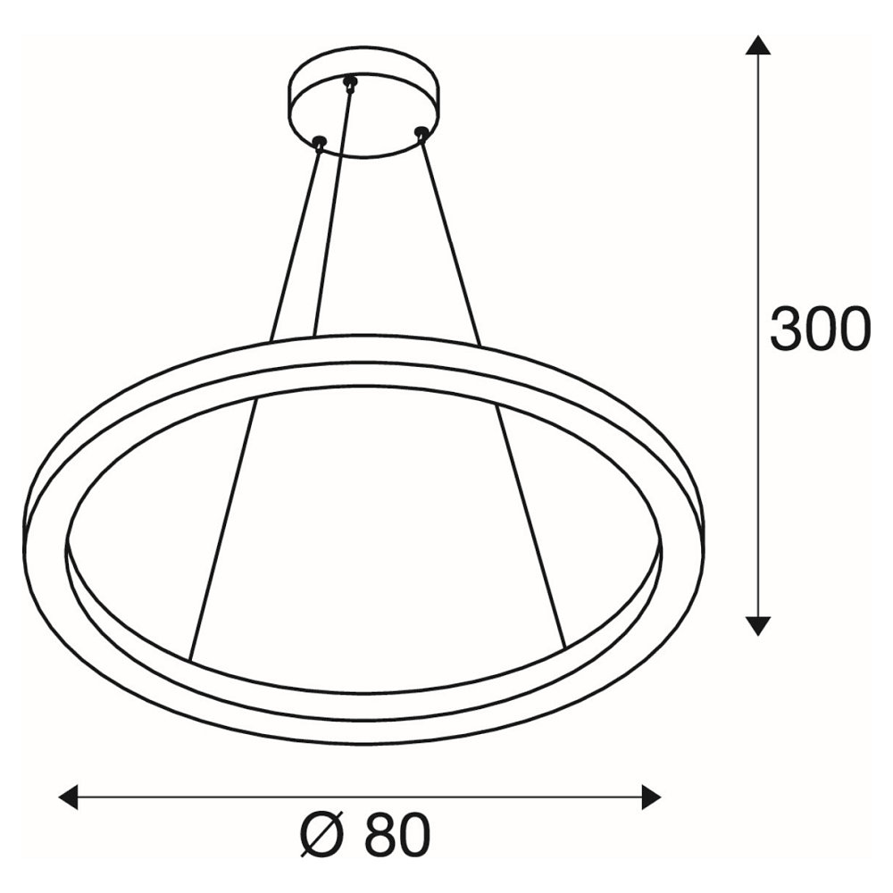 De hanglamp heeft een diameter van 80cm en een hoogte van 3cm, terwijl de basis een diameter heeft van 18cm en een hoogte van 4cm. Het heeft een energieklasse E en een kleurtemperatuur van 3000/4000K. De LED hanglamp ONE 80 DALI heeft een IP20-beschermingsklasse en is geschikt voor plafondmontage in binnenruimtes.