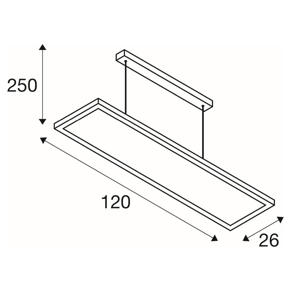 De hanglamp heeft een ophanglengte van 250 cm, die naar behoefte kan worden ingekort. De installatie is eenvoudig en gemakkelijk met de montageset. De vierkante basis meet 60/5,6/3,5 cm en maakt het moderne ontwerp van het licht compleet.