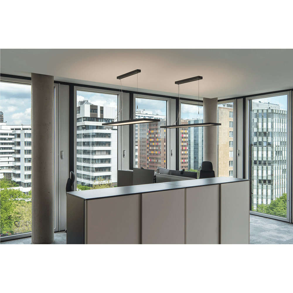 Met een UGR-waarde van minder dan 19 biedt de hangende lamp WORKLIGHT DALI verblindingvrije verlichting, waardoor een aangename sfeer in jouw ruimte wordt gecreëerd. De UGR-waarde geeft aan in hoeverre het licht verblindend is, en met een waarde lager dan 19 wordt een lage verblinding gegarandeerd, wat vooral belangrijk is voor werk- en leefruimtes.