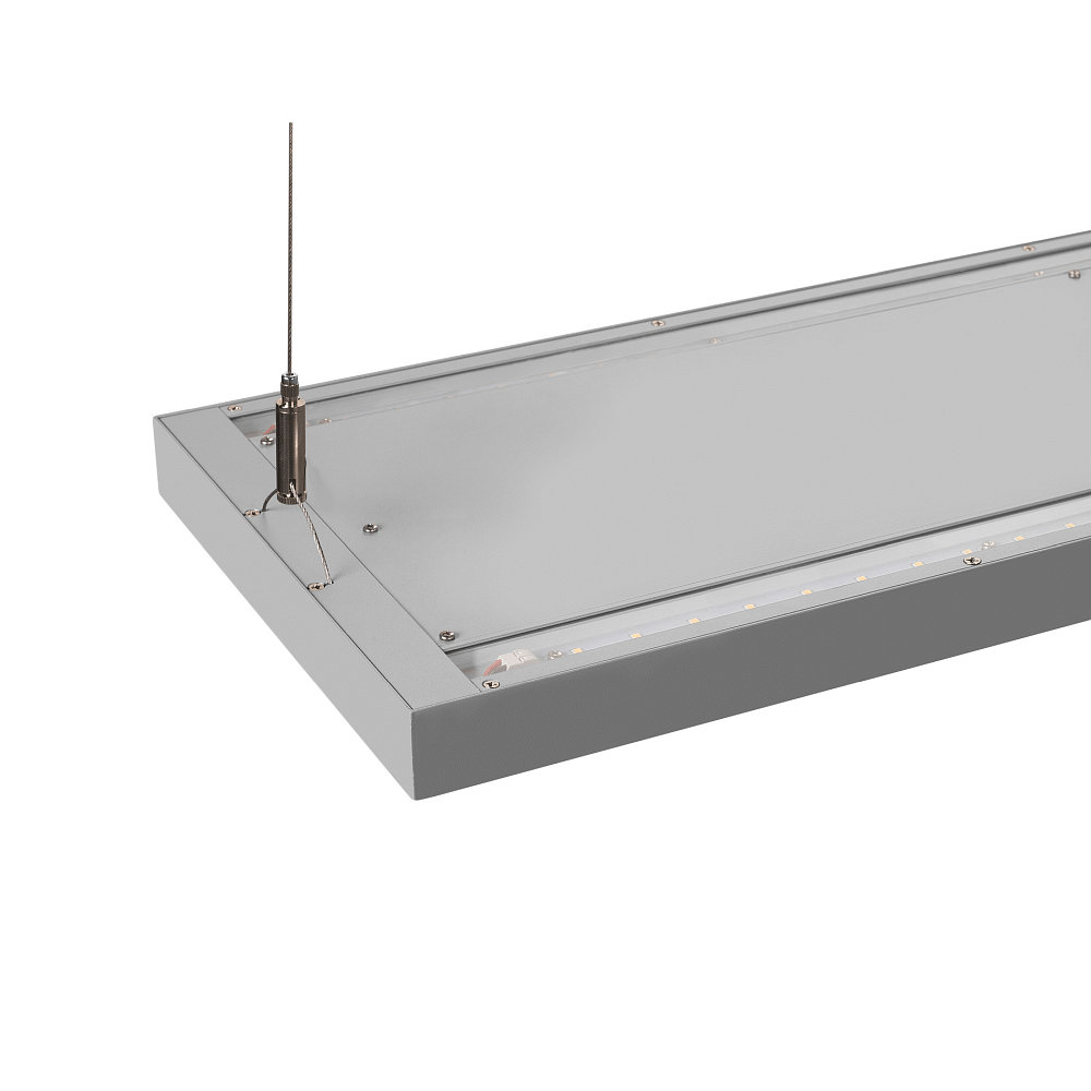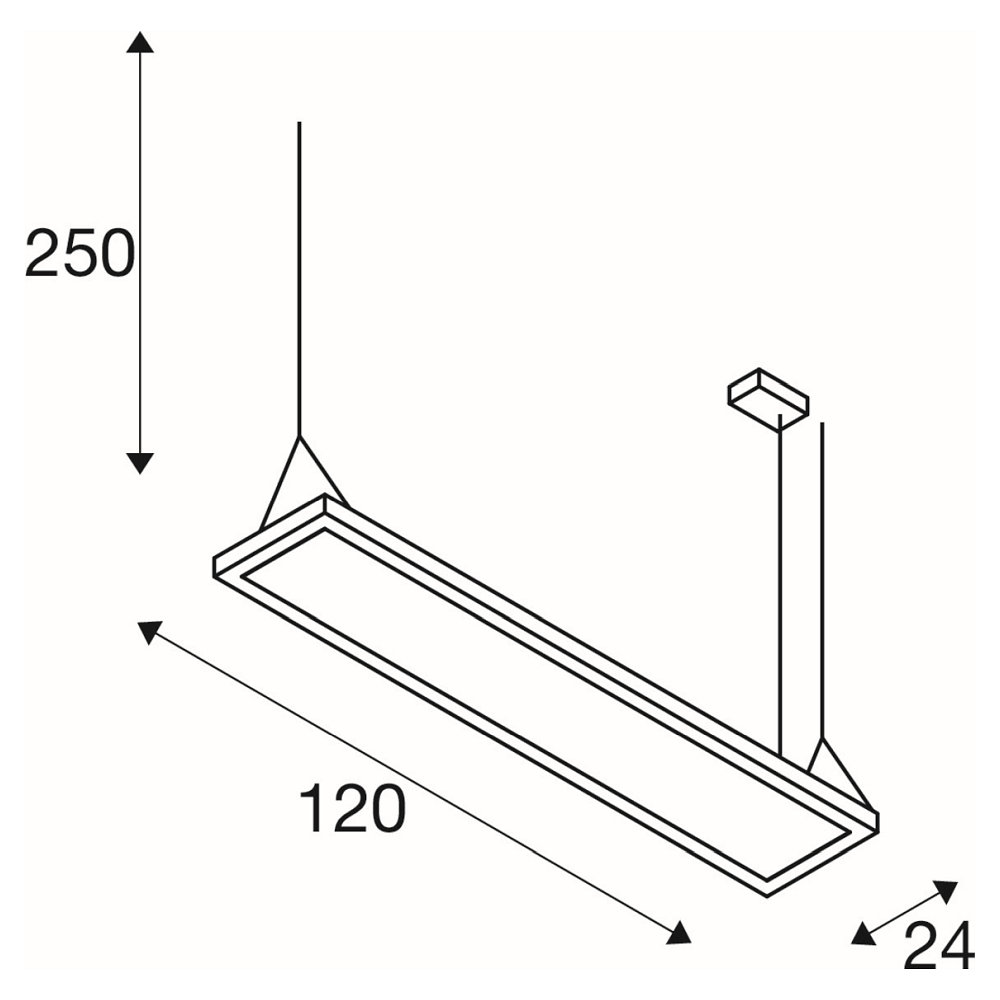 De hangverlichting heeft afmetingen van 120 x 3,28 x 24 cm en is gemaakt van hoogwaardig aluminium en staal. De lichthoek kan worden aangepast tussen 80° en 115° om de verlichting te optimaliseren. Met een IP20 beschermingsklasse is de verlichting beschermd tegen stof en aanraking.