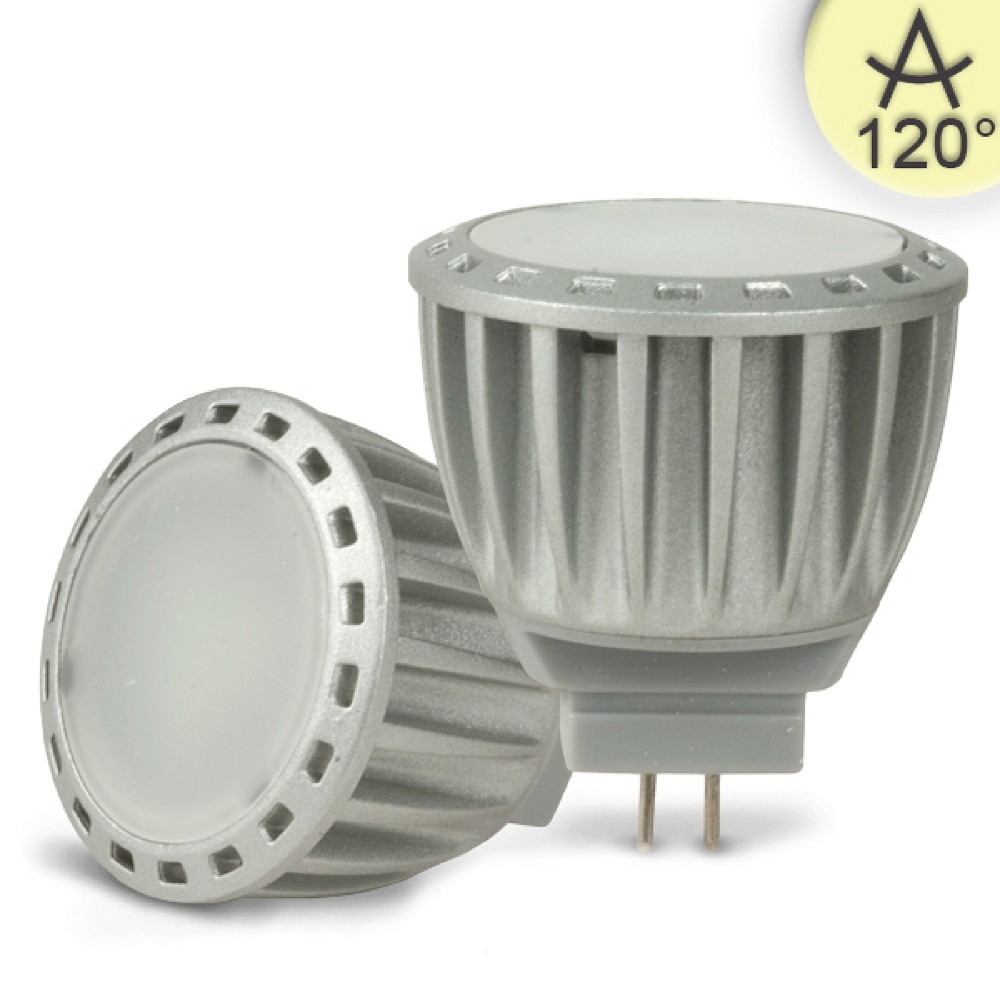 Pin based LED reflector lamp MR11 diffuse, 12V AC / DC, G4, 4W 3000K 250lm 120°, dimmable