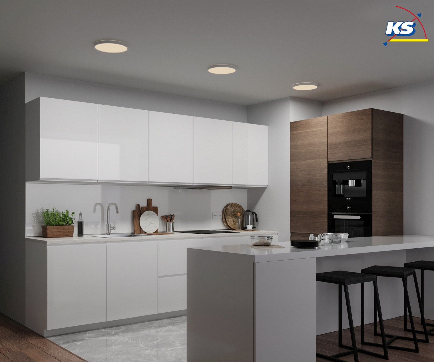 Plafondarmatuur OJA 29 SCENE SELECT rond, on/off IP20, wit mat