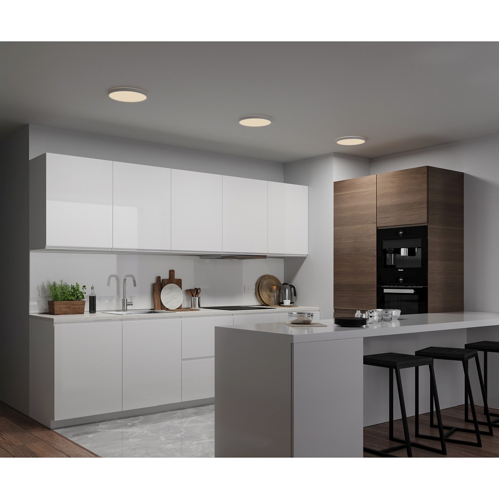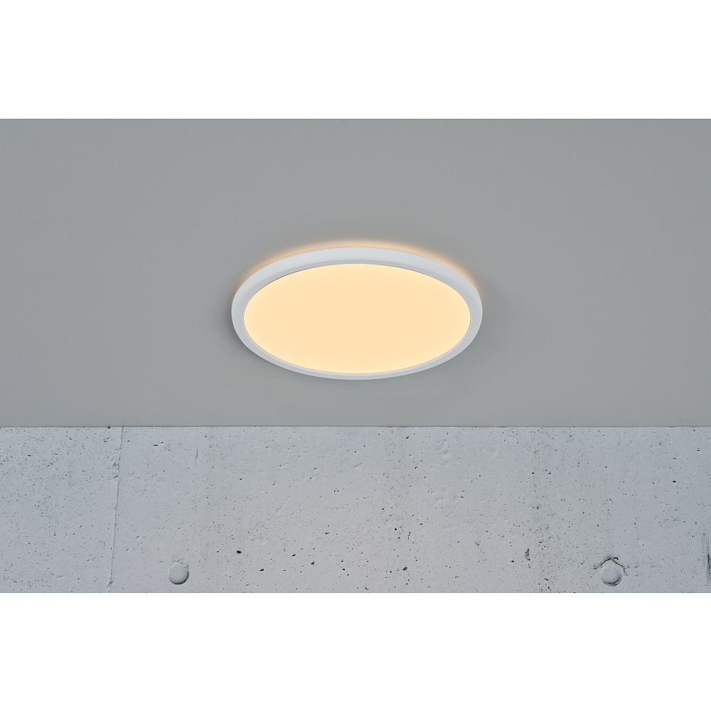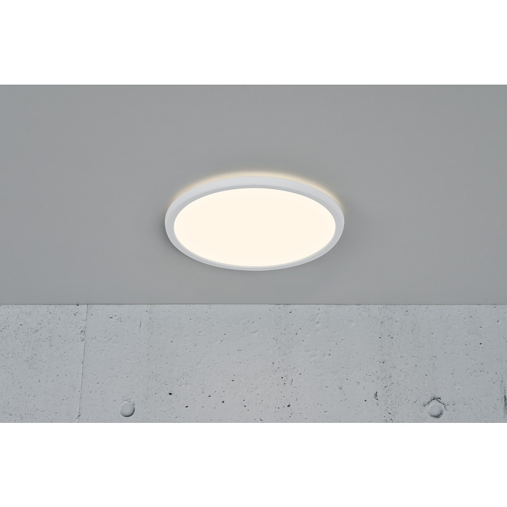 De LED plafondlamp voor badkamer OJA 29 SCENE SELECT is een ultradunne plafondlamp met krachtig direct licht en een heldere decoratieve gloed aan de achterkant. Het biedt een breed en gelijkmatig licht in elke ruimte en creëert ook een aangename en ruime sfeer, zelfs in kleine ruimtes.