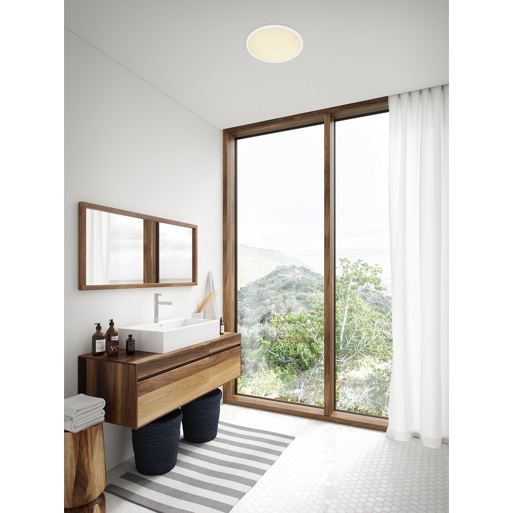De OJA 60 plafondlamp biedt praktische kenmerken zoals een geheugeneffect dat het laatst ingestelde helderheidsniveau activeert bij het inschakelen. Met de nachtlichtfunctie en achtergrondverlichtingseffect creëert de lamp een aangename sfeer. De dimmer in de lampbehuizing zorgt voor eenvoudige bediening en onmiddellijk volledige lichtopbrengst wanneer nodig.