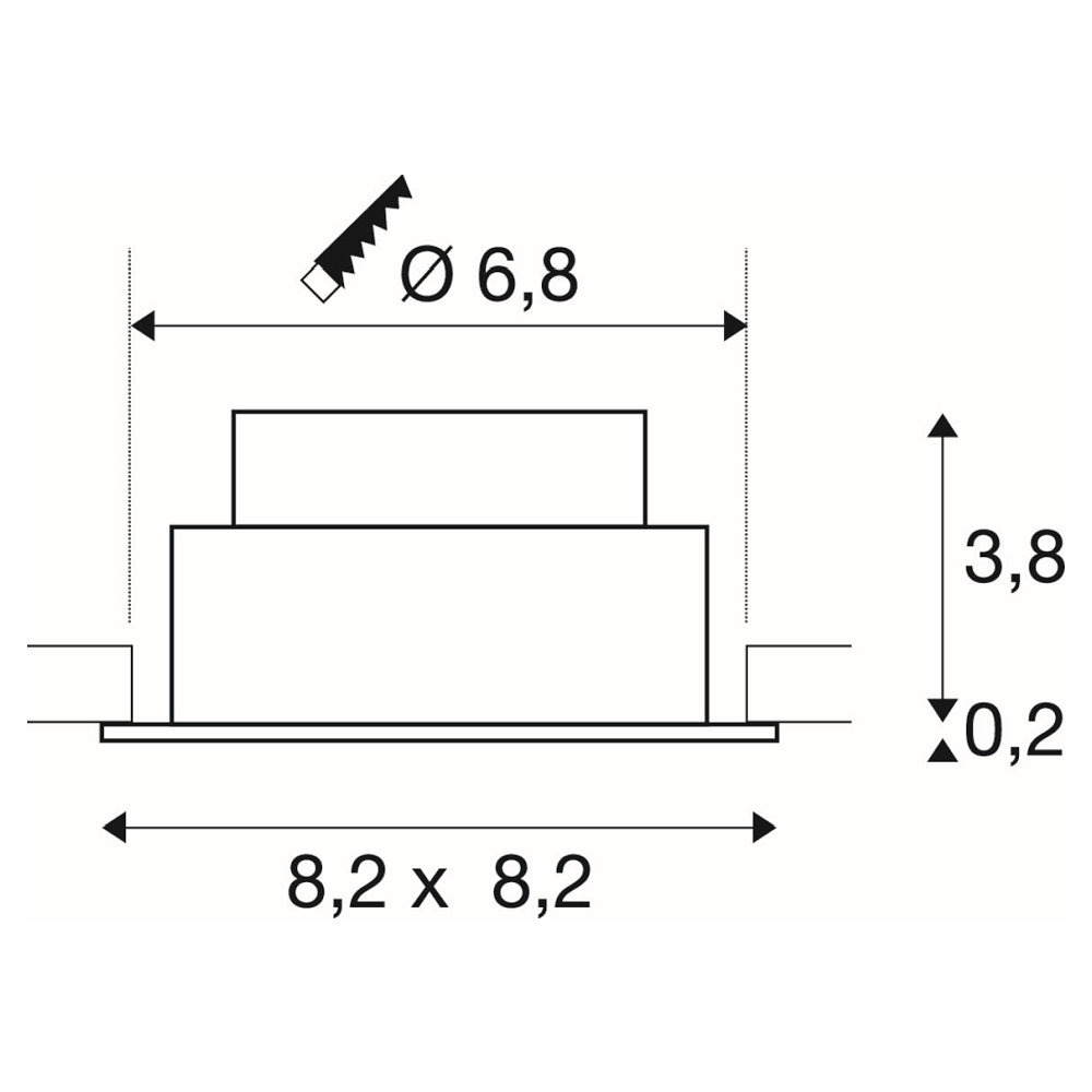 De vierkante lichtbron heeft afmetingen van 8,2 x 8,2 x 4 cm en kan worden gemonteerd in een uitsparing met een diameter van 6,8 cm. Het heeft een stralingshoek van 60° en een gemiddelde levensduur van 50000 uur.