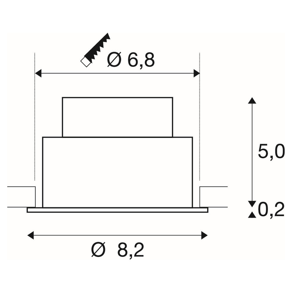De geïntegreerde plafondlamp is eenvoudig te installeren en kan worden gemonteerd in een uitsparing met een diameter van 6,8 cm. Met een diepte van 5,5 cm past de lamp in veel verschillende ruimtes. Het lichaam is gemaakt van aluminium, waardoor het een stevige en duurzame constructie heeft.