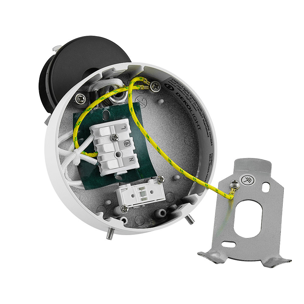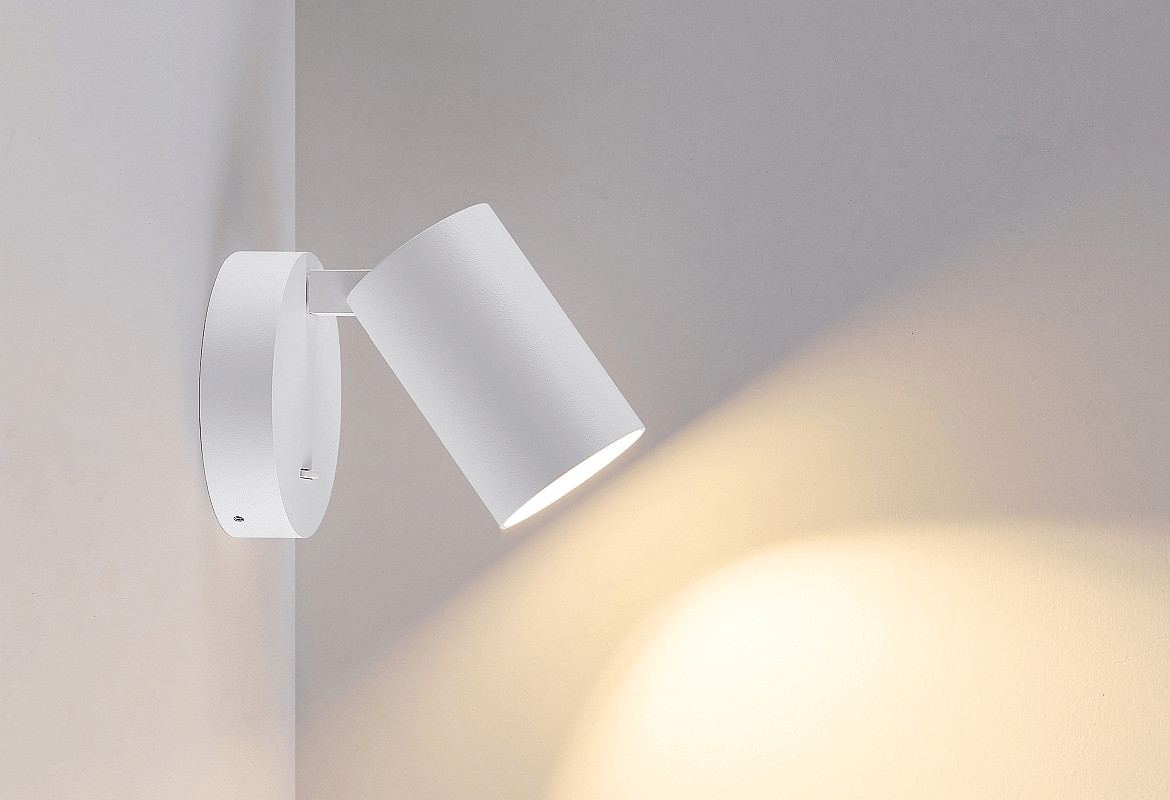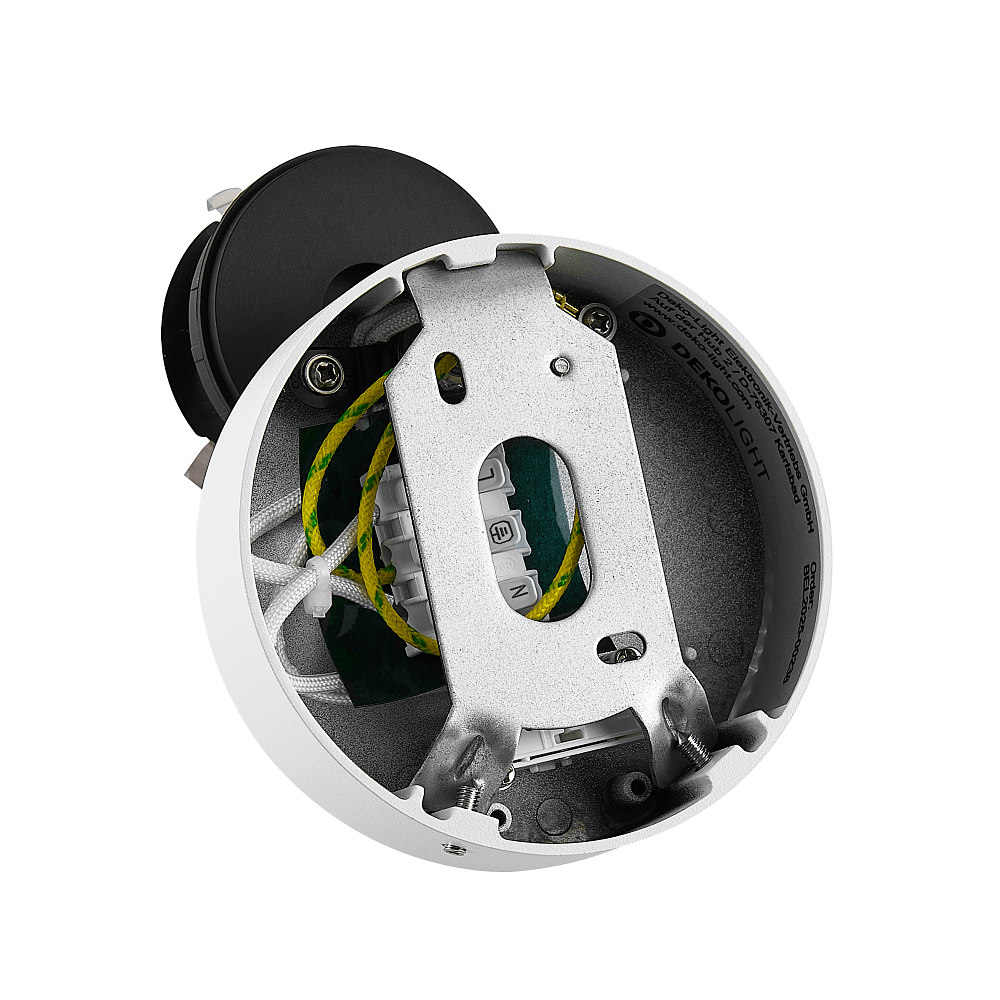 The lamp is equipped with a rotatable head that can be turned 340° and additionally tilted by 90°. This allows the light beam to be individually directed and focused on specific areas. This flexibility makes the CAN TILT ROUND BASE ideal for providing pleasant and functional light exactly where it is needed. The lamp is fitted with a GU10 socket, enabling the use of replaceable high-voltage reflector lamps up to a maximum of 7.5 watts.